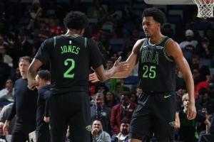 本場比賽,鵜鶘兩位鋒線墨菲和瓊斯進(jìn)攻端都毫無狀態(tài),尤其是外線各種機(jī)會就是投不進(jìn)。墨菲20中3,三分11中1,罰球5中3拿到10分5籃板5助攻3搶斷1蓋帽;瓊斯則是12中3,三分9中1,罰球2中2拿到9分5籃板5助攻2搶斷2蓋帽。
