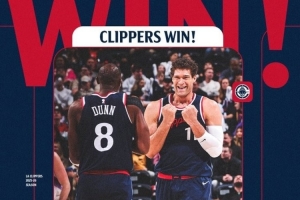 賽后快船發(fā)布贏球海報,洛佩斯和鄧恩登上封面。