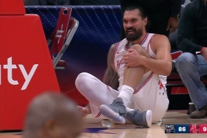 相關(guān)新聞:不要啊!亞當(dāng)斯防守落地左腿受傷了 起不來啊 被攙扶回更衣室