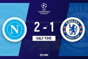 上半場傷停補時3分鐘,半場結(jié)束,切爾西暫1-2那不勒斯。