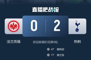 體育資訊01月29日訊 歐冠聯(lián)賽階段第8輪戰(zhàn)罷,熱刺2-0力克法蘭克福,以聯(lián)賽階段第4的成績直通15強(qiáng)。球隊(duì)在本屆歐冠聯(lián)賽階段8輪5勝2平1負(fù)。