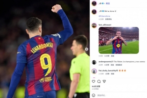 巴薩也成功直通16強。萊萬也在賽后通過社媒曬出自己的振臂慶祝照,并配文:“我們做到了!”