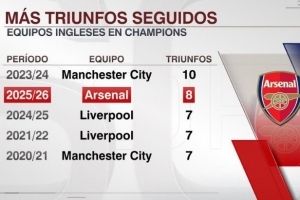 以下為英超球隊在歐冠連勝紀(jì)錄榜: