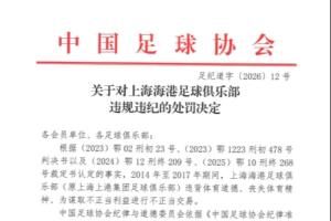 關于對上海海港足球俱樂部違規(guī)違紀的處罰決定