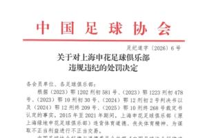 一、扣除上海申花足球俱樂部 2026 賽季相應(yīng)的職業(yè)聯(lián)賽積分 10分;