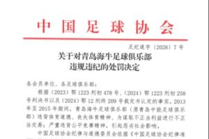 一、扣除青島海牛足球俱樂部2026賽季相應(yīng)的職業(yè)聯(lián)賽積分7分;