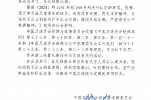 體育資訊01月29日訊 足協(xié)發(fā)布“假賭黑”整治處罰結果,原天津天海足球俱樂部球員張鷺,違背體育道德、喪失體育精神、為謀取不正當利益進行不正當交易;操控足球比賽,嚴重違背公平競賽精神,引起惡劣社會影響,被終身禁賽。
