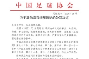 終身禁止朱宏興從事任何與足球有關(guān)的活動(dòng)。