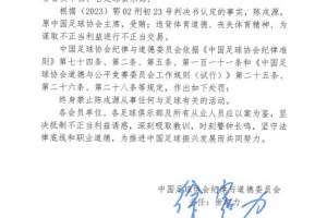 各會員單位、各足球俱樂部及所有從業(yè)人員應(yīng)以案為鑒,堅決抵制不正當(dāng)利益誘惑,深刻吸取教訓(xùn),時刻警鐘長鳴,堅守法律底線和職業(yè)道德,為推進中國足球振興發(fā)展而共同努力。