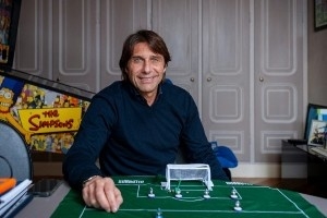 在都靈的孔蒂家中,我們?cè)谒臅?shū)房聊了三個(gè)小時(shí)的足球。書(shū)房里擺著一張桌上足球臺(tái),還有一臺(tái)辛普森一家主題的彈珠機(jī)。之后,孔蒂帶著我參觀了他的家。墻上掛著一幅裝裱好的證書(shū),那是他的意大利共和國(guó)功績(jī)騎士勛章。伊麗莎貝塔笑著解釋道:“就像埃爾頓·約翰爵士那樣的榮譽(yù)?!?/p>