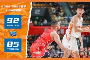 2025-2026賽季CBA聯賽常規(guī)賽第二十一輪展開較量,福建晉江文旅男籃客場挑戰(zhàn)廣州朗肽海本男籃,主隊憑借開局的強勢發(fā)揮建立起大比分領先,盡管后續(xù)被對手持續(xù)追分,末節(jié)更是被廣州朗肽海本男籃將分差迫近至2分,但主隊將士們頂住巨大壓力,外線接連命中關鍵三分澆滅對手反撲勢頭,最終以92-85拿下最終的勝利。四節(jié)比分分別是:30-12,22-29,21-22,19-22(福建晉江文旅男籃在前)。