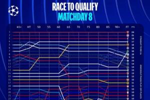 體育資訊01月30日訊 昨日凌晨,歐冠聯(lián)賽階段第8輪的比賽同時(shí)開打,最終阿森納、拜仁領(lǐng)銜8隊(duì)鎖定16強(qiáng)席位,巴薩、曼城、葡萄牙體育末輪進(jìn)入八強(qiáng)。