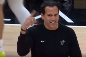 GIF-韋爾大帽道蘇姆被吹干擾球,熱火挑戰(zhàn)成功