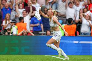 這位英格蘭前鋒與耐克合作已有數(shù)年,她在2022年歐洲杯奪冠后標志性的慶祝動作,將球衣舉過頭頂、露出白色耐克運動內衣,成為了該品牌的一個經典形象。