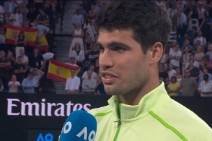 體育資訊1月30日訊 在阿爾卡拉斯3-2擊敗茲維列夫,晉級澳網(wǎng)決賽后,他接受了場邊的采訪。