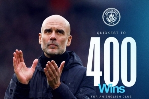 此役是瓜迪奧拉執(zhí)教曼城的第400場勝利,他用569場比賽達成這一里程碑,成為執(zhí)教單一英格蘭俱樂部最快達成400勝的教練。曼城官方社媒曬出海報,配文:“最偉大的?!?/p>