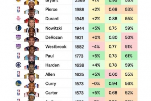 注:關(guān)鍵時刻數(shù)據(jù)從1996-97賽季開始統(tǒng)計(jì)