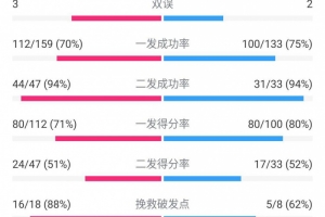 接二發(fā)得分率:16/33(48%)比23/47(48%)