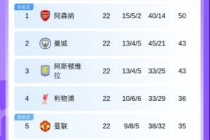 體育資訊01月19日訊 本輪英超基本結(jié)束,阿森納本輪沒有贏球,但還是成功擴(kuò)大了1分分差。