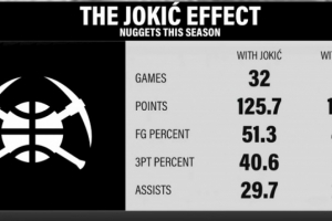 有約基奇 32場(chǎng)場(chǎng)均125.7分29.7助 命中率51.3% 三分命中率40.6%