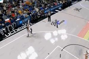 GIF-小哈達威落地踩到喬丹·米勒的腳,裁判看回放后吹三分犯規(guī)