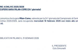 體育資訊1月31日訊 據(jù)意甲聯(lián)賽官網(wǎng)的消息,AC米蘭主場(chǎng)與科莫的補(bǔ)賽時(shí)間確定,將在北京時(shí)間2月19日03:45進(jìn)行。
