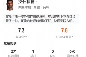 體育資訊1月19日訊 巴薩在本輪西甲1-2不敵皇社,拉什福德本場數(shù)據(jù)如下: