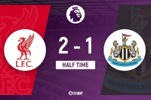 半場(chǎng)結(jié)束,利物浦暫2-1紐卡斯?fàn)枴?/p>