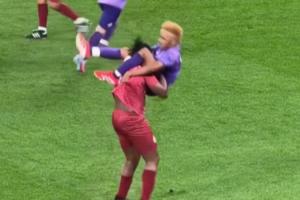 體育資訊02月01日訊 近日,卡塔爾的一場(chǎng)慈善足球賽中出現(xiàn)精彩一幕。當(dāng)?shù)辍た扑顾蛉刖适澜绮〞r(shí),球場(chǎng)邊的隊(duì)友和對(duì)手卻在搶戲。