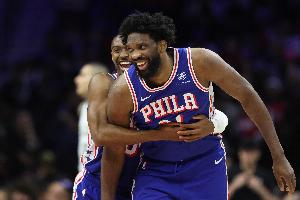 此役76人球星恩比德展現(xiàn)了自己的統(tǒng)治力,出場(chǎng)39分鐘27投13中,三分5中3、罰球14中11砍下全場(chǎng)最高40分11籃板外加4助攻1搶斷2蓋帽,有5失誤,正負(fù)值+16。