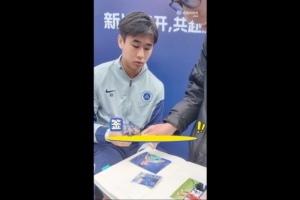 體育資訊2月1日訊 據(jù)記者程文莉消息,深圳新鵬城球員戴偉浚昨日出席活動(dòng),滿(mǎn)足球迷簽名合影的要求。
