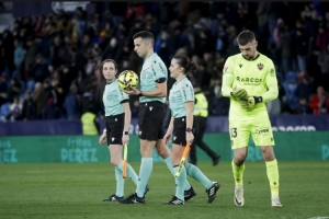 體育資訊2月1日訊 西甲第22輪比賽,萊萬特在主場和馬競互交白卷。本場比賽,兩名女性裁判出現(xiàn)在裁判團隊中,兩人均是擔任助理裁判。