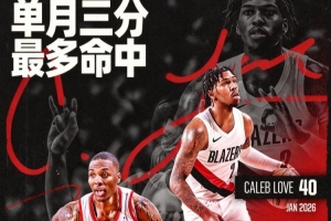 開拓者官微寫道:“來看看樂福在一月的(40記)三分表現(xiàn)?? 他在一月單月三分命中數(shù)排名開拓者隊(duì)史新秀第二位,僅次于達(dá)米安·利拉德(42記)”