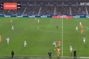西甲第20輪,巴薩客場(chǎng)1-2不敵皇家社會(huì),比賽上半場(chǎng)第17分鐘亞馬爾貢獻(xiàn)了一次絕妙的盤帶表演。