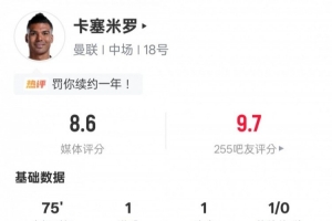 體育資訊2月1日訊 英超第24輪,曼聯(lián)主場(chǎng)迎戰(zhàn)富勒姆,卡塞米羅首發(fā)出戰(zhàn),傳射建功,還有1次關(guān)鍵傳球,另外他在防守端還有3次解圍和3次搶斷,評(píng)分8.6。