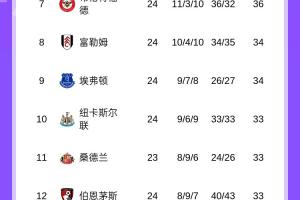 體育資訊2月2日訊 英超第24輪,熱刺2-2戰(zhàn)平曼城,最新的積分榜情況如下↓