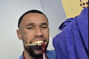 奪冠后葉赫萬·迪烏夫社媒曬出與獎牌、毛巾的合照,配文:“都在這里(獎牌和毛巾)?!?/p>