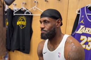 NBA官方Instagram曬出對(duì)詹姆斯賽前的更衣室采訪。