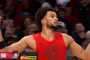 GIF-卡馬拉空位三分 開拓者一波18-4打停騎士
