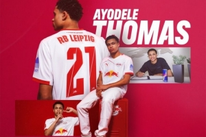 公告寫道:“RB萊比錫簽下攻擊手阿約德勒·托馬斯,這位18歲的球員從埃因霍溫轉(zhuǎn)會(huì)而來,與RB萊比錫簽約至2031年,他將身披21號(hào)球衣?!?/p>