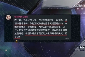 完成體測后,狼隊的運動表現(xiàn)副主管史蒂文(Stephen Gilpin)特意用簡體中文給徐彬發(fā)了一條暖心的私信:“晚上好,很高興今天第一次見到你和我們一起訓(xùn)練。你訓(xùn)練得非常棒,體能測試數(shù)據(jù)也是今天組里最好的。今晚好好休息,盡快恢復(fù),為明天的訓(xùn)練做好準備。記住,如果你在訓(xùn)練前需要胡安的理療,可以在健身房開放前進行。希望你適應(yīng)了我們的文化和寒冷的天氣!明天見!”