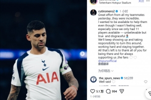 體育資訊2月3日訊 熱刺在昨日2-2戰(zhàn)平曼城,熱刺后衛(wèi)羅梅羅在今日更新社交媒體,發(fā)表了感想。