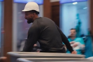 GIF-查爾斯·李賽后戴著建筑工人的帽子在更衣室狂奔慶祝