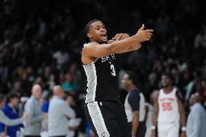 本場比賽,馬刺球員凱爾登表現(xiàn)出色,最后時刻還命中關(guān)鍵的壓哨三分球,替補(bǔ)出戰(zhàn)31分鐘,投籃14中8,三分球5中3,罰球2中1,拿下20分1籃板2助攻1搶斷的數(shù)據(jù),正負(fù)值+7。