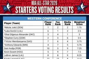 體育資訊01月20日訊 2026年NBA全明星首發(fā)出爐,隨之的全明星首發(fā)投票詳情也出爐。