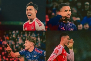 馬丁內(nèi)利在一月份的表現(xiàn)同樣出色,他在足總杯第三輪對(duì)陣樸茨茅斯的比賽中上演了職業(yè)生涯首個(gè)帽子戲法,幫助球隊(duì)以4-1獲勝。此外,他在對(duì)陣阿拉木圖凱拉特的歐冠比賽中也打入一球,成為繼亨利之后在單賽季歐冠中進(jìn)球最多的球員。他在對(duì)陣?yán)澛?lián)的比賽中還助攻吉奧克斯,本賽季貢獻(xiàn)了12個(gè)進(jìn)球和助攻。