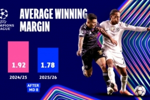 聯(lián)賽階段還帶來了更小的勝利差距,平均勝利差距為1.78個進(jìn)球,低于上賽季的1.92個進(jìn)球。比賽更加接近、更具競爭力和戲劇性。