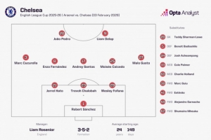 體育資訊2月4日訊 聯(lián)賽杯半決賽次回合比賽,切爾西前往客場(chǎng)挑戰(zhàn)阿森納。賽前首發(fā)陣容顯示,切爾西本場(chǎng)比賽采用了三后衛(wèi)陣型。
