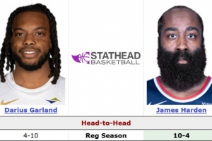 據(jù)統(tǒng)計,哈登生涯面對加蘭10勝4負,場均24.1分5.4籃板9.6助攻1.3搶斷,加蘭場均19.8分3.5籃板7.5助攻1.6搶斷。