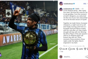 我們一起創(chuàng)造了歷史,我們永遠都不會忘記成為歐聯(lián)杯冠軍的那個夜晚。在歐聯(lián)杯決賽中上演帽子戲法,隨俱樂部舉起獎杯,終結長達61年的冠軍荒,2024年以亞特蘭大球員的身份榮膺非洲足球先生,那些時刻、那些情感、那些燈光下的夜晚,已深深鐫刻在我的心底。